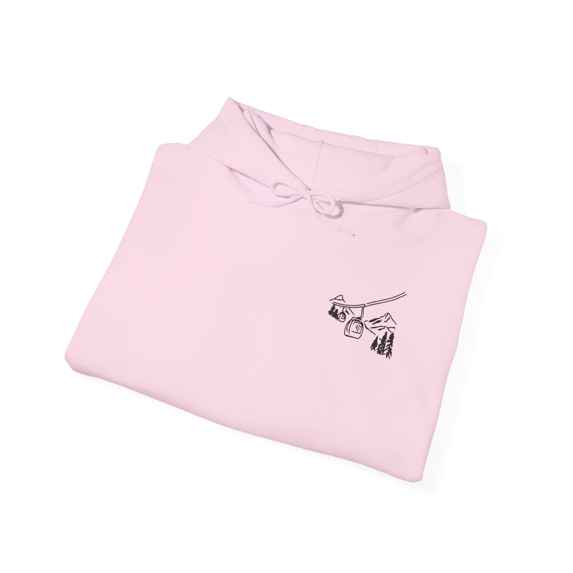 Hoodie — Minimal Ski Resort Line Art Hoodie (chairlift, skis & mountain)