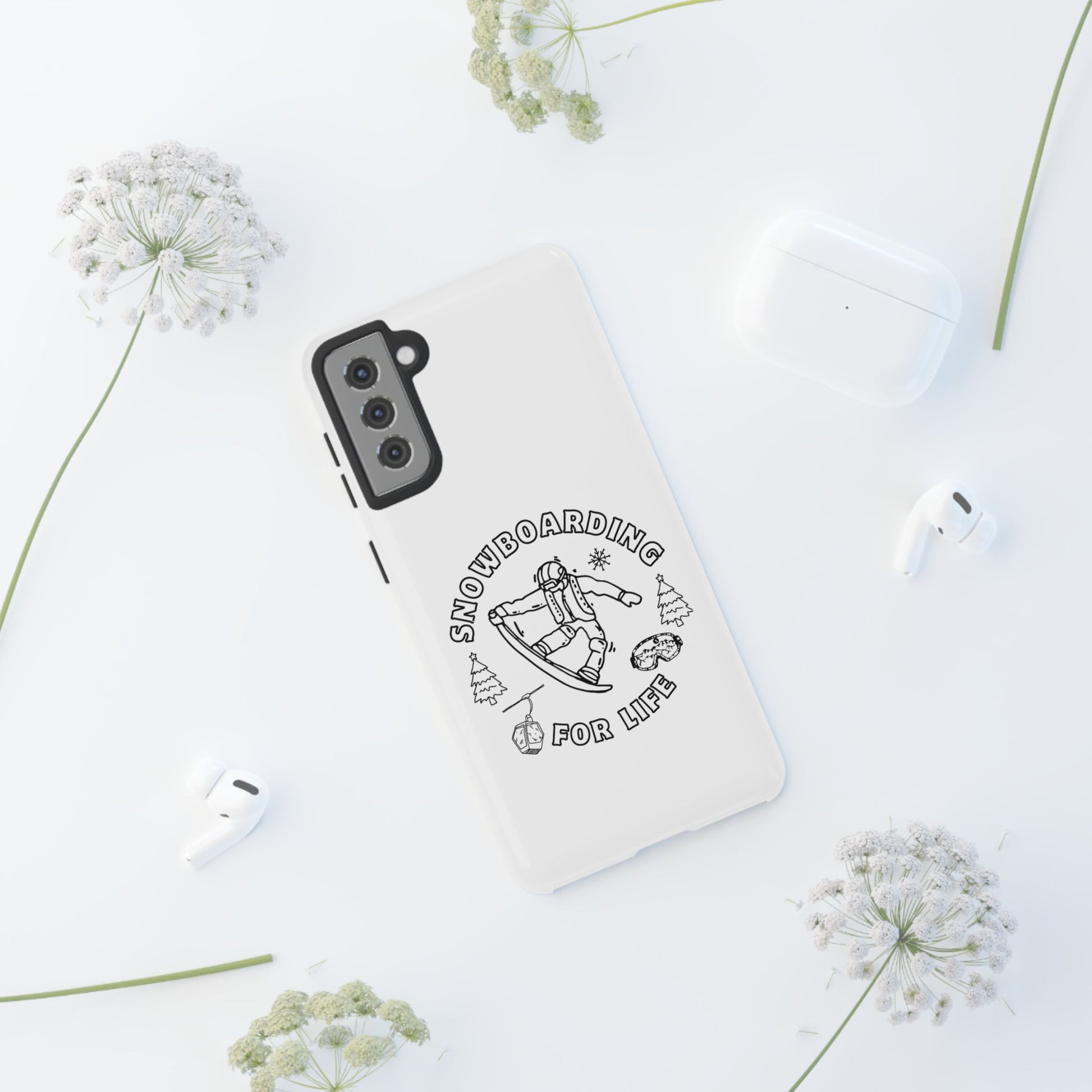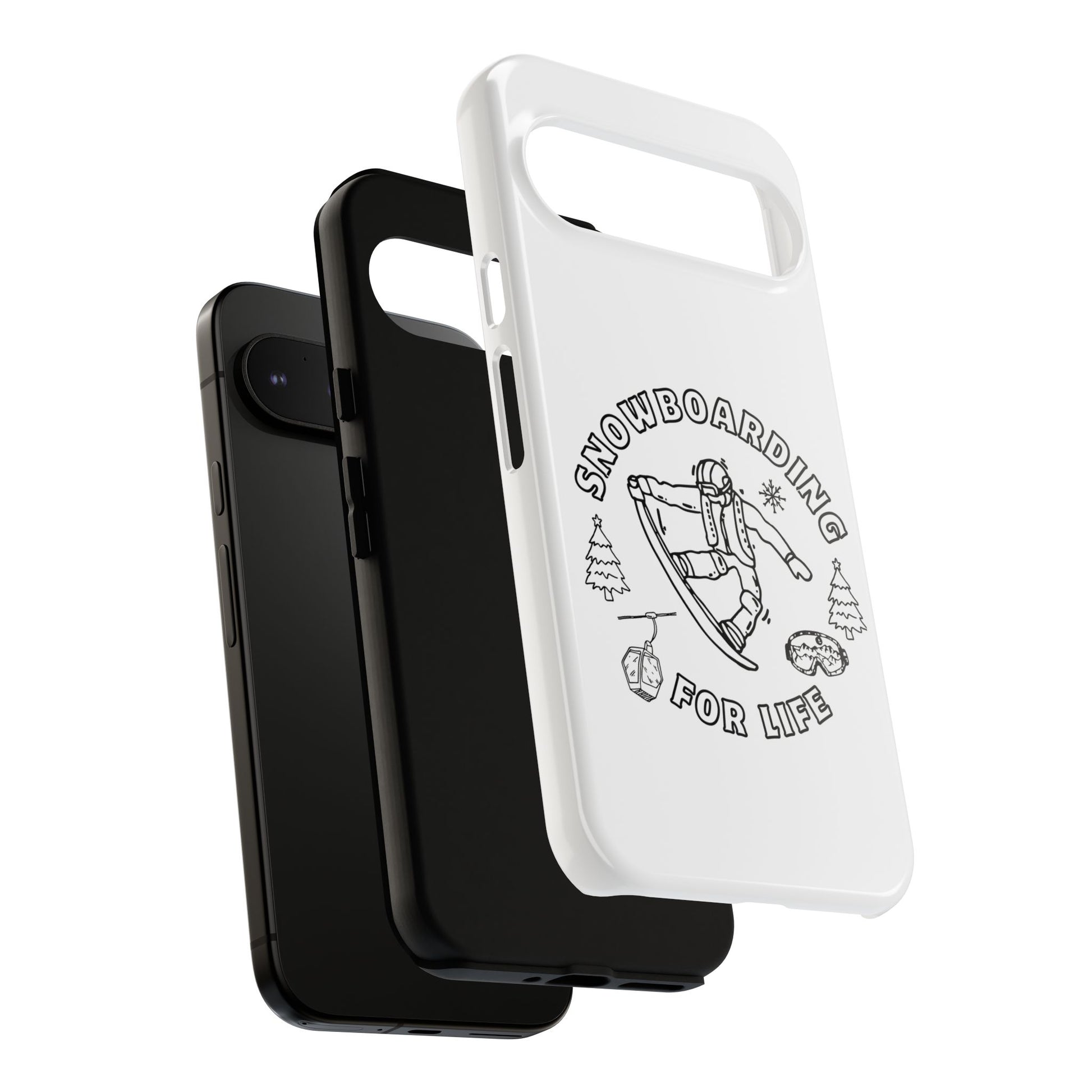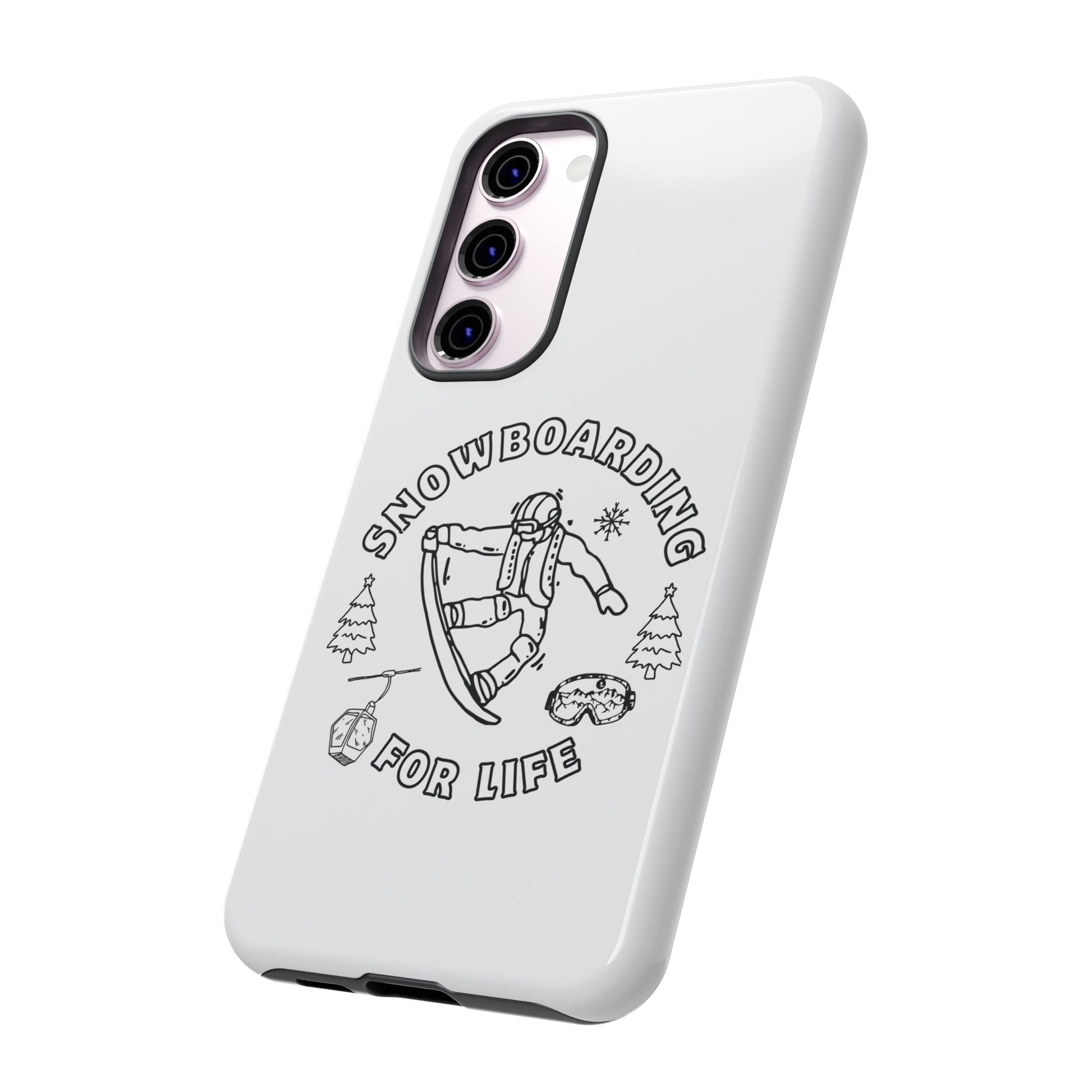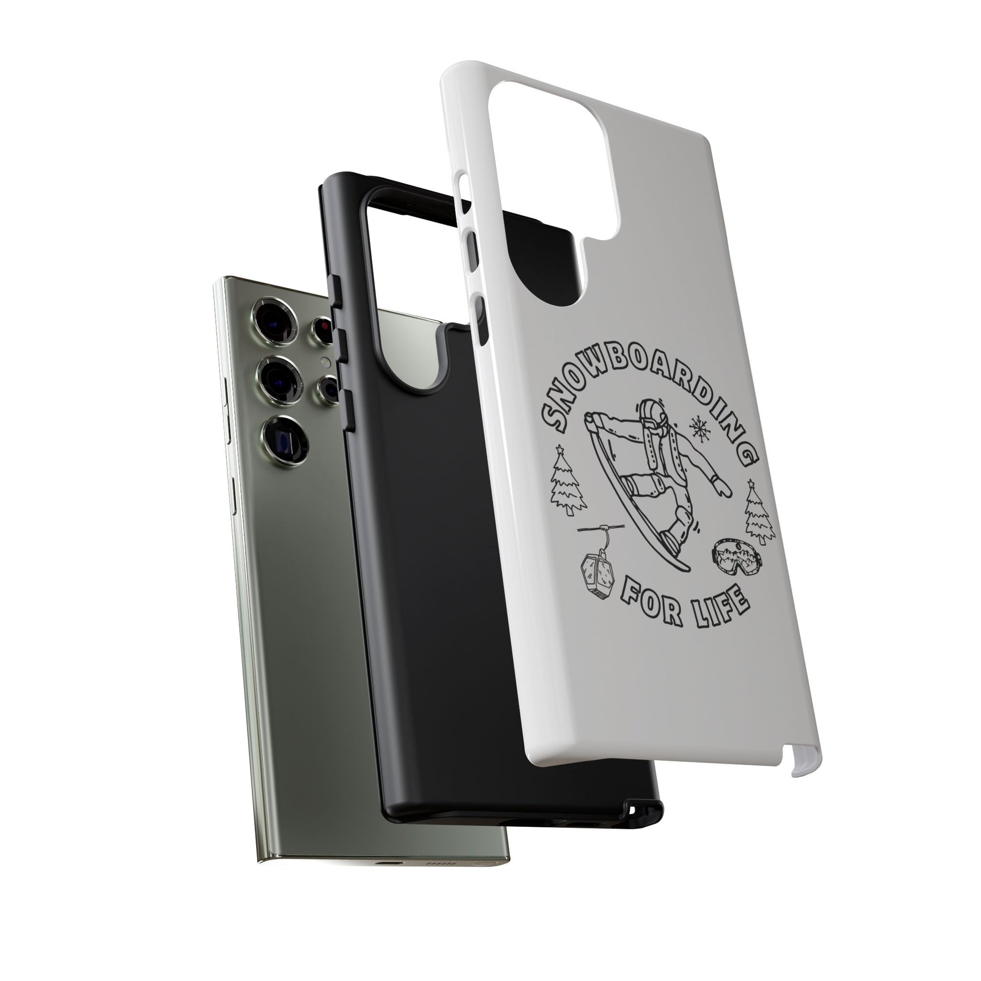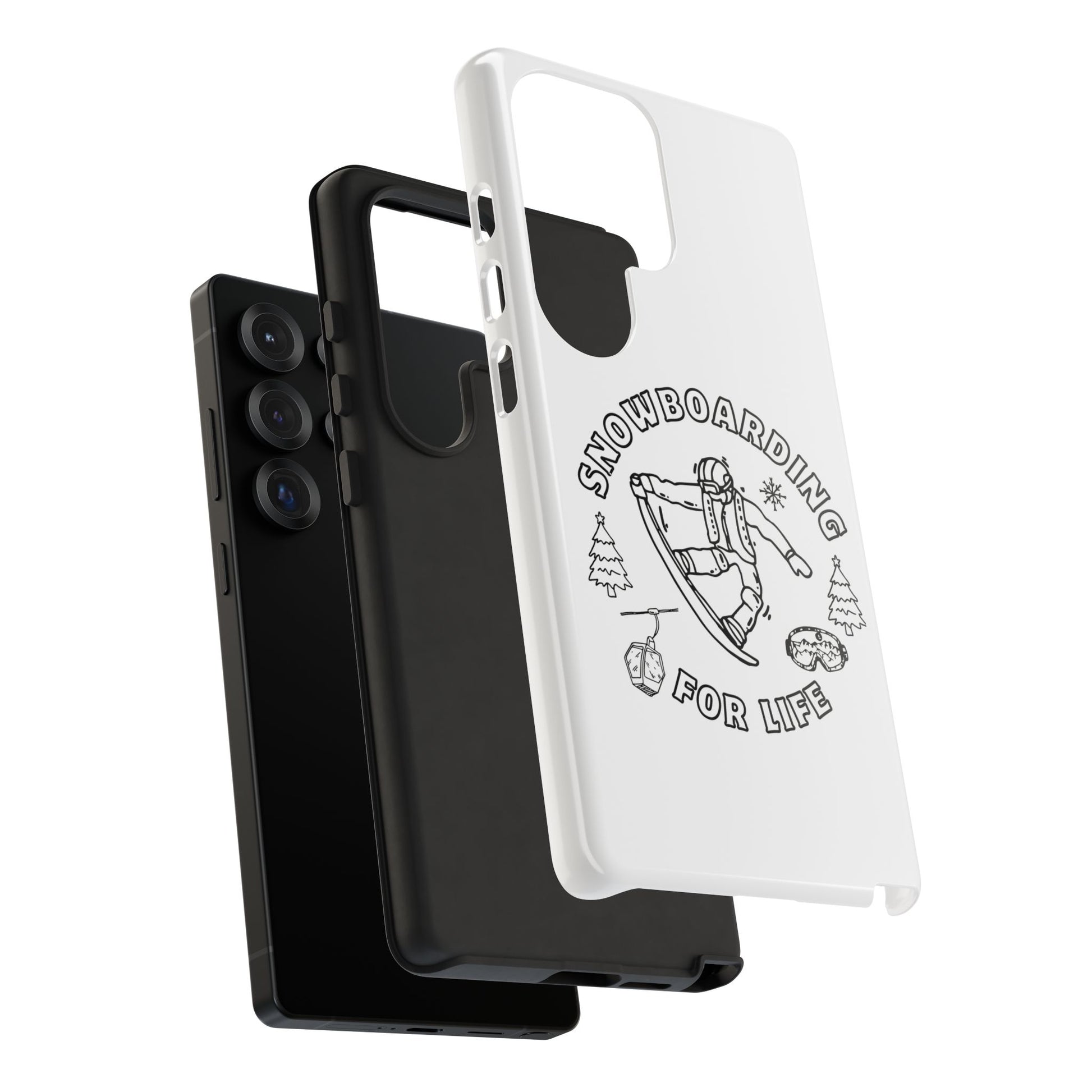 Carry a slice of the mountain with you. This tough phone case wraps a crisp, hand-drawn snowboarding emblem around a dual-layer shell — a rider carving through powder framed by trees, goggles and mittens. It feels solid in hand, shields against drops, and resists UV fading so the artwork stays clear through seasons of travel and trailhead selfies. Slip it on before a cold-weather road trip or keep it as your everyday reminder of wind-in-your-face runs and lift-line chatter. The glossy finish keeps the linework clean and minimal, matching tight layers, rugged gloves, and the casual gear of people who chase fresh tracks.