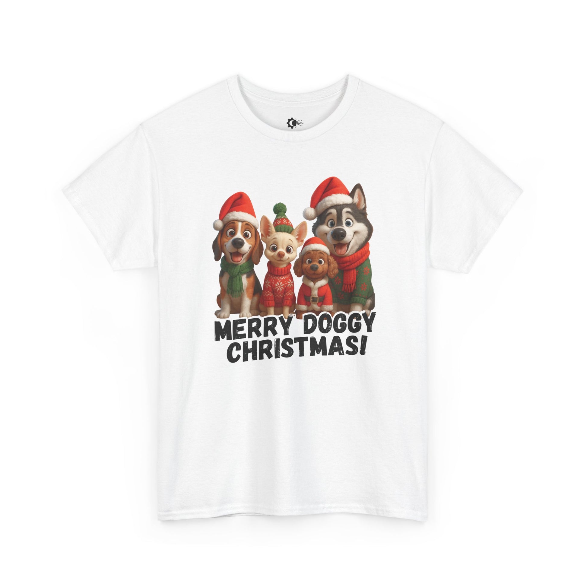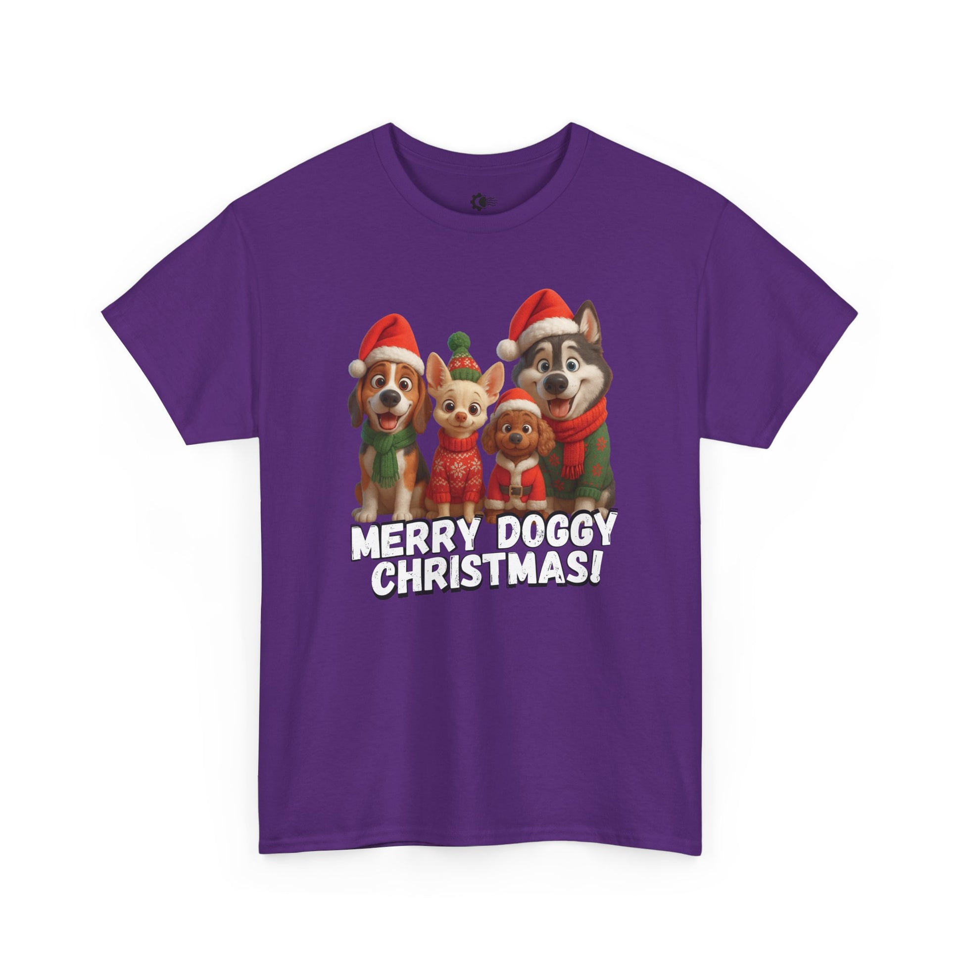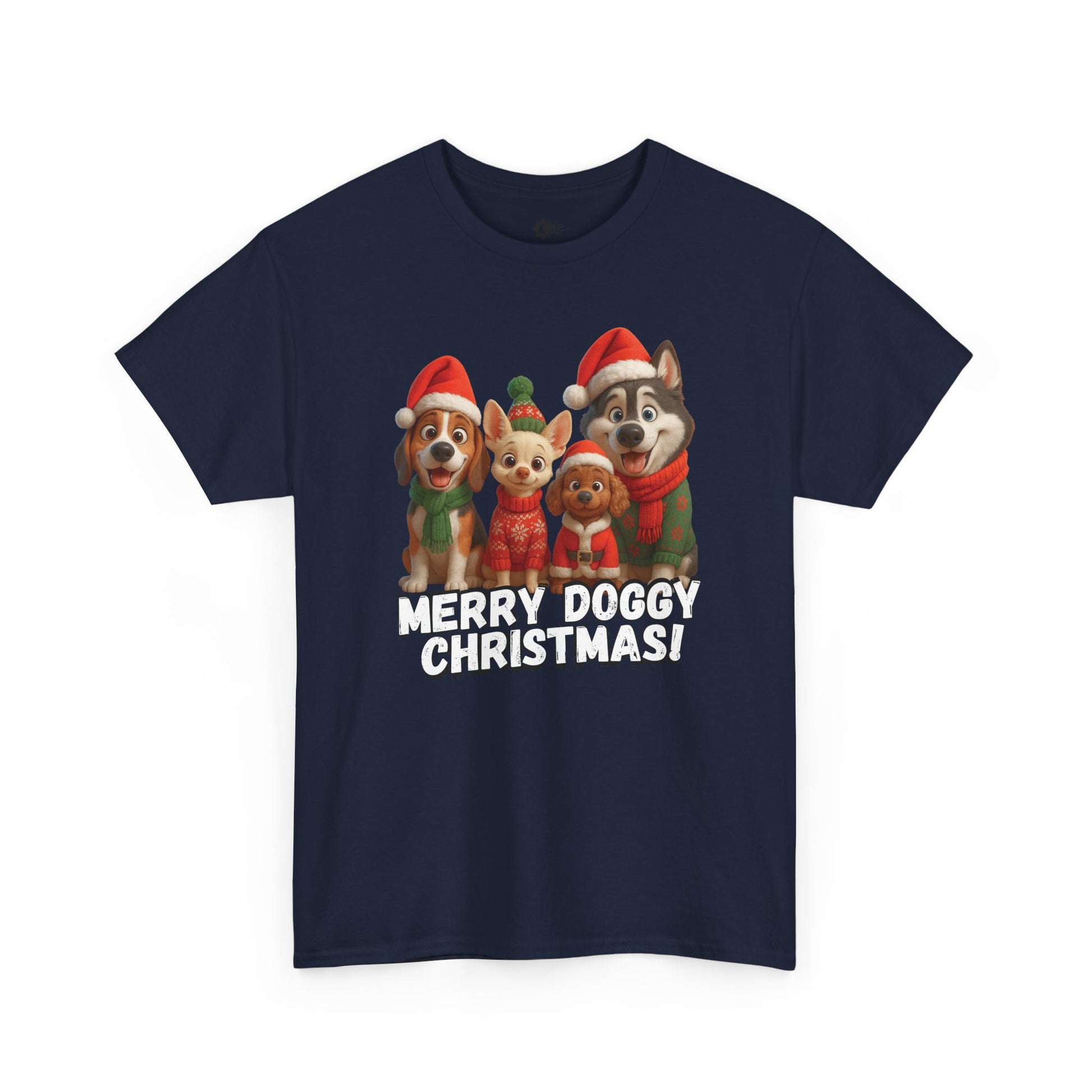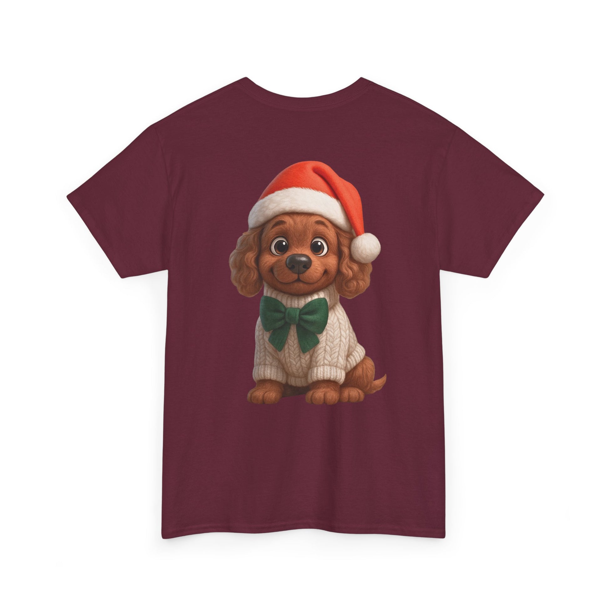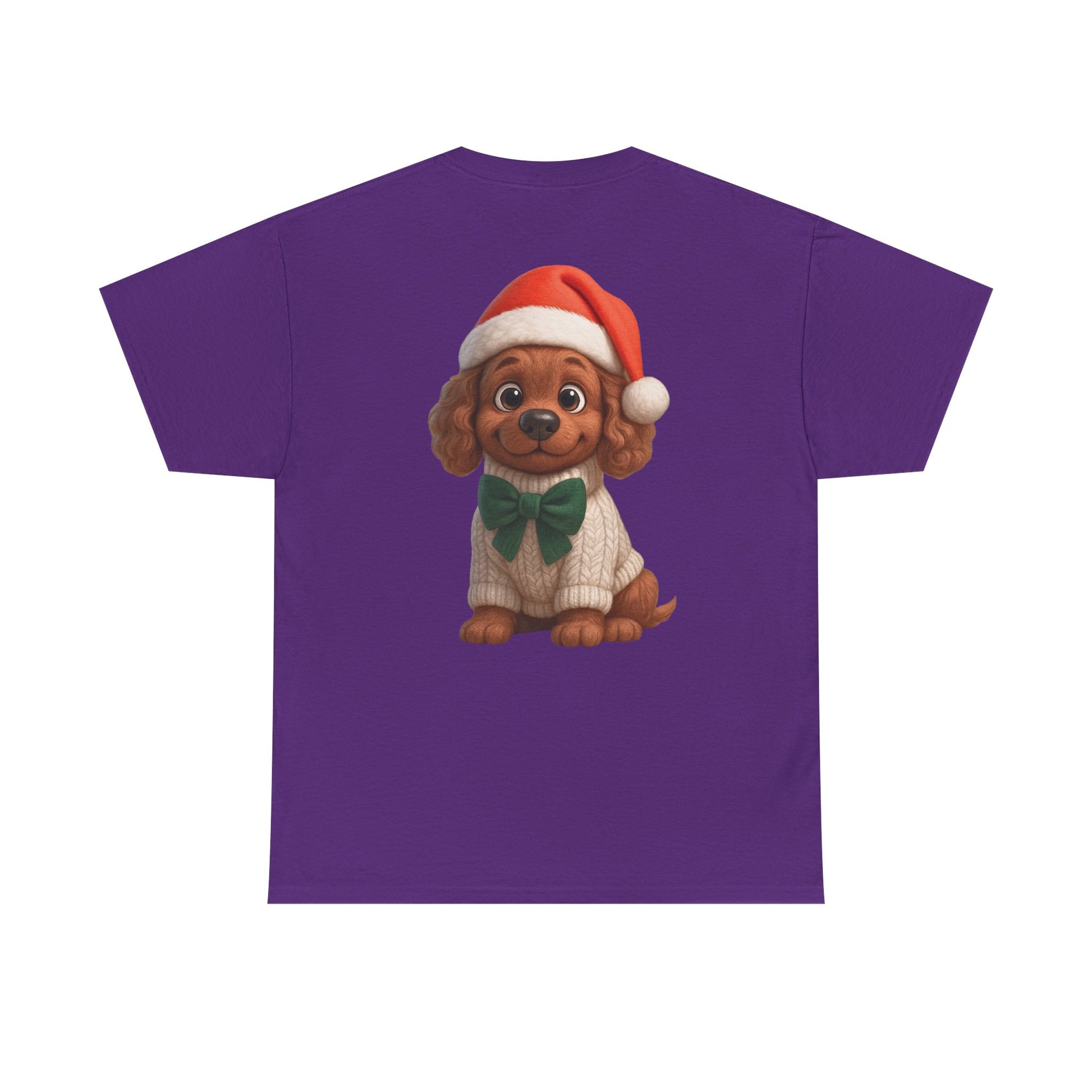 A soft, classic-fit tee that carries warm, playful holiday cheer for dog lovers. The front shows three festive pups in Santa hats smiling like they own the holiday, while the back features an adorable single pup wearing a bow and stocking-cap. Short, bright lines and rich DTG/DTF printing keep the illustrations lively wash after wash. Wear it around the tree, at a cozy family gathering, or while walking your dog through frosty streets — it feels like a hug from a furry friend and sparks smiles wherever you go.