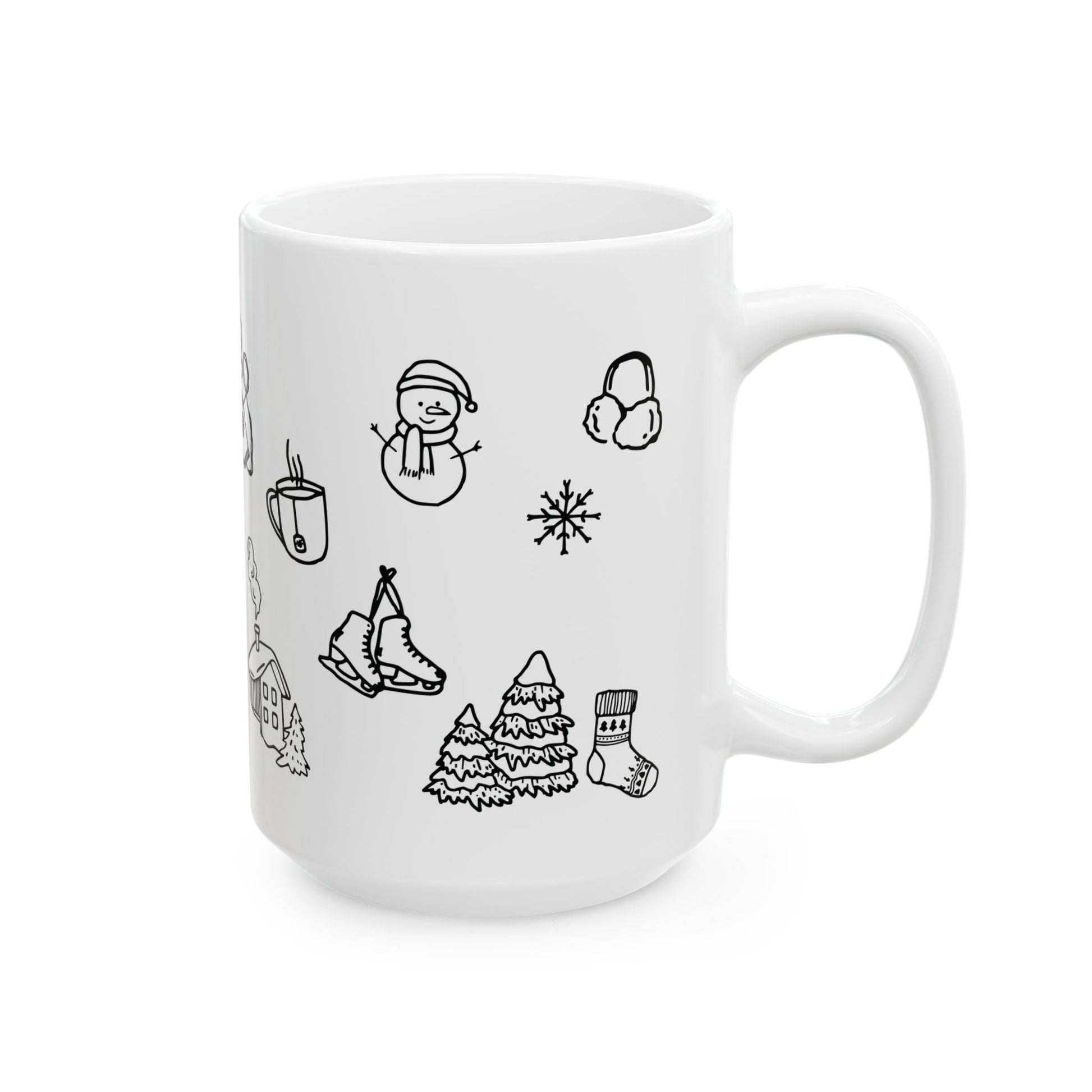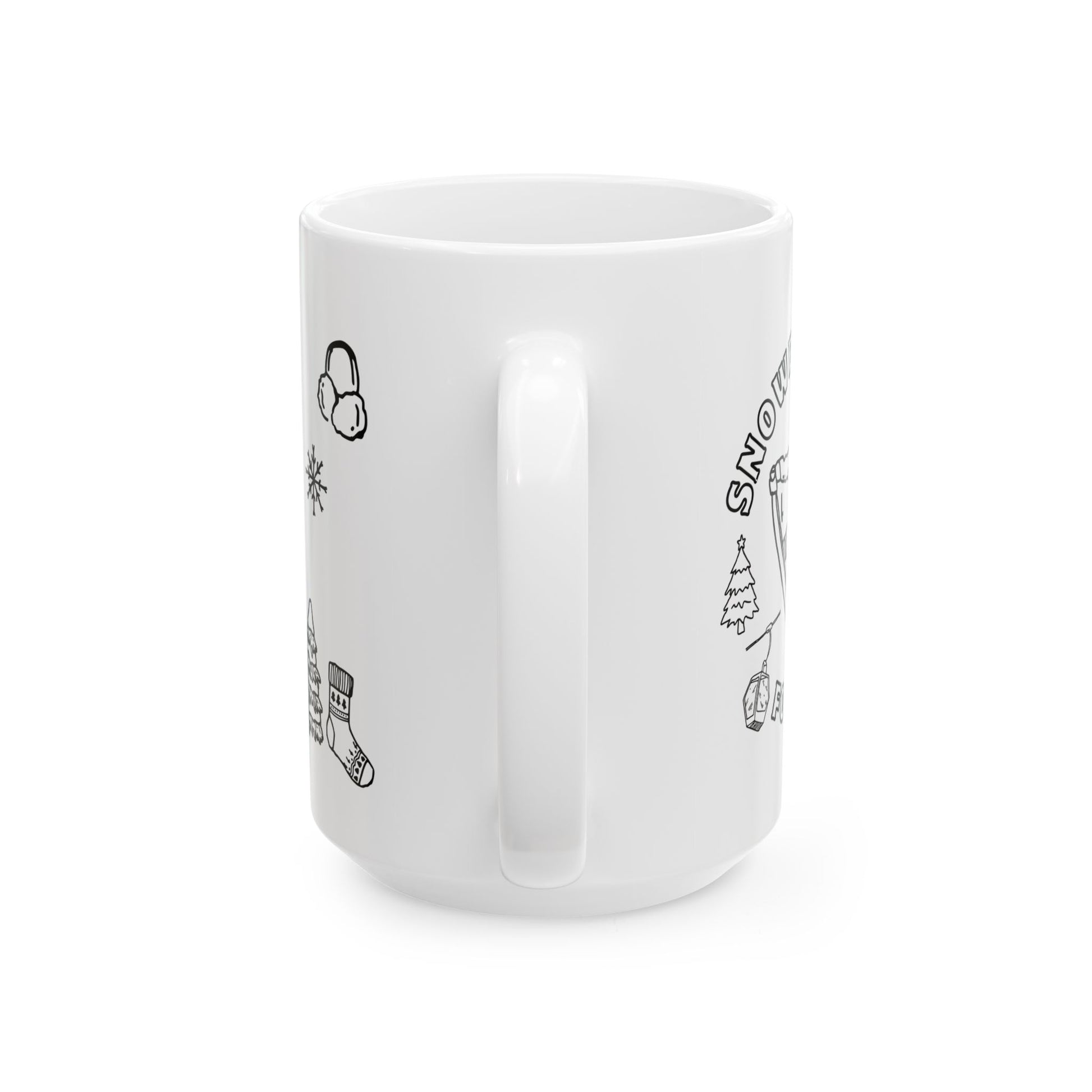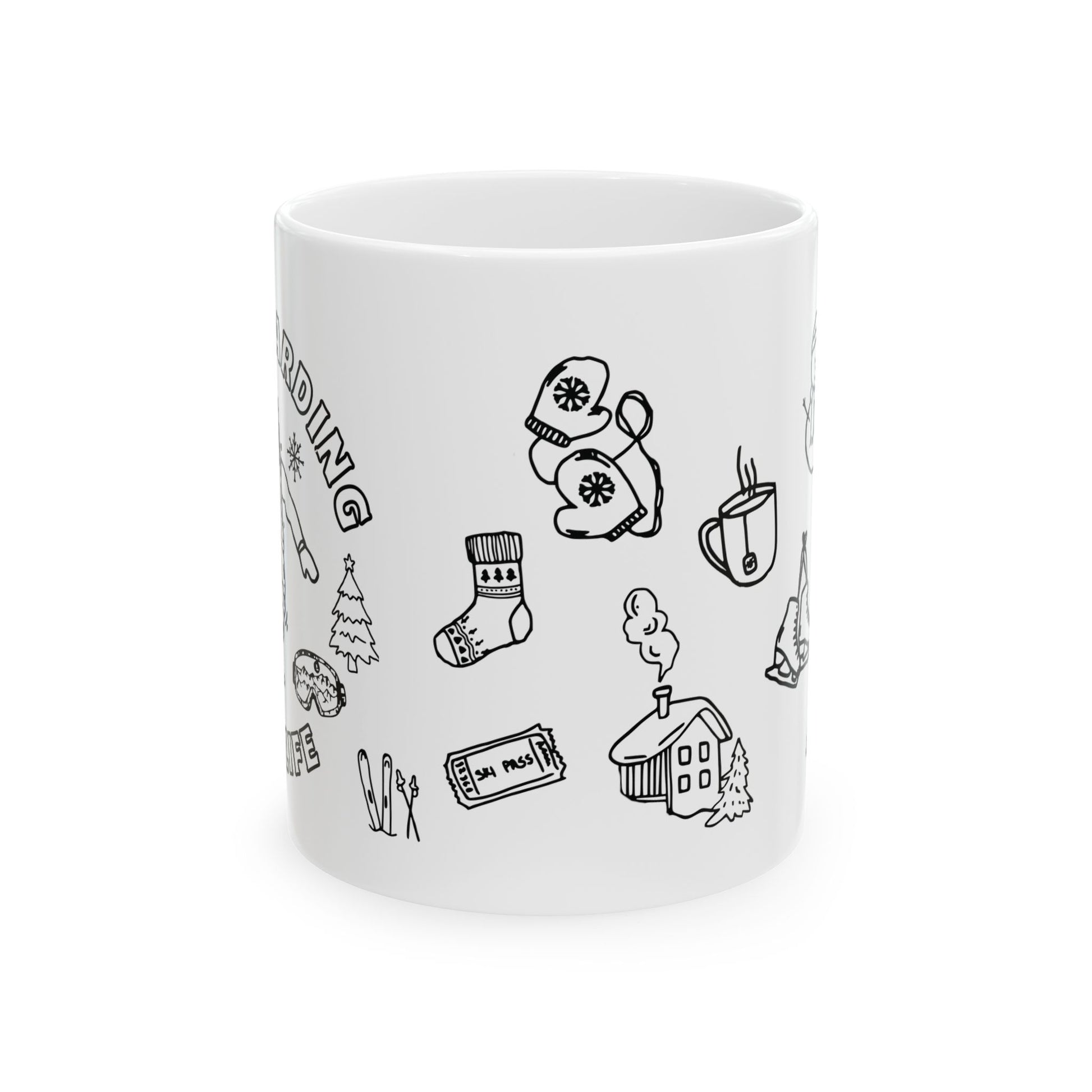Winter Doodle Ceramic Mug — Snowboarding & Cozy Holiday (11oz, 15oz)